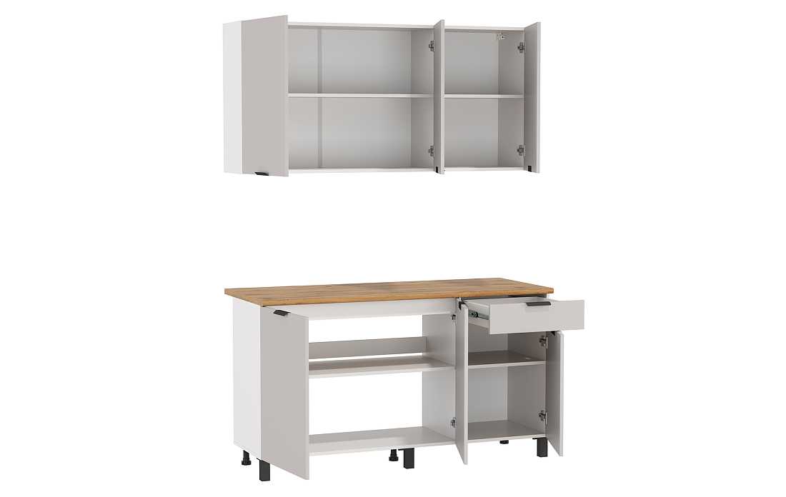 Кухонный гарнитур 1500 мм Венера кашемир ЛДСП (Олмеко) в Асбесте - asbest.mebel-e96.ru